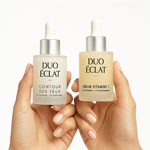 Tras la limpieza, aplica el Contorno de Ojos Duo Éclat para hidratar en profundidad y favorecer la regeneración durante el descanso. Si lo deseas, puedes repetir la aplicación del Sérum Vitamina C Duo Éclat en la noche para potenciar su acción antioxidante y mantener la piel uniforme.